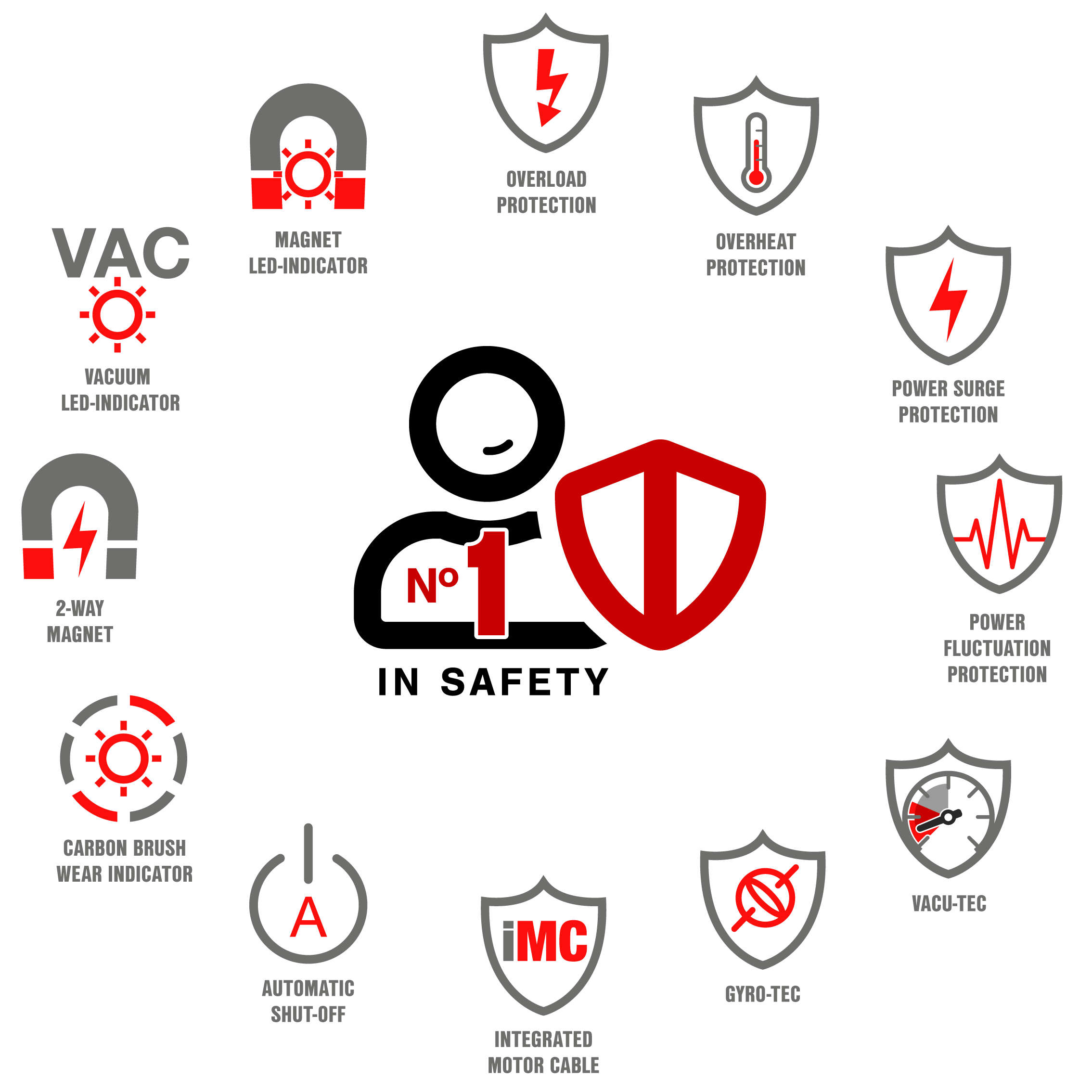 Shuts down the motor upon detecting unexpected movements or loss of magnetic force, protecting both user and machine.