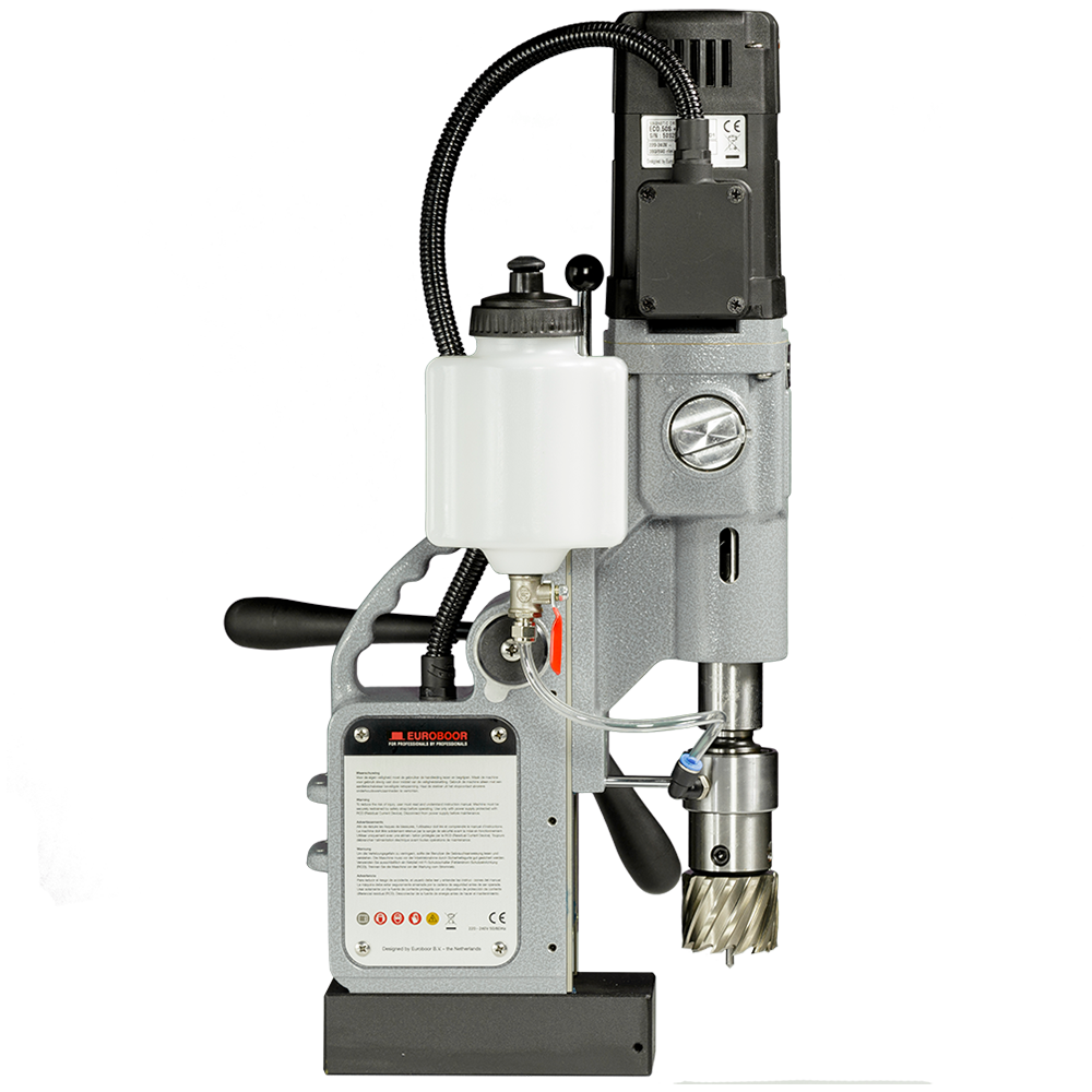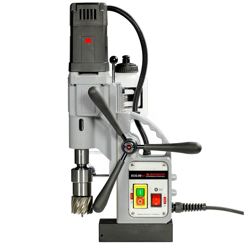 The Euroboor ECO.50S+ magnetic core drilling machine converts maximum power through its two speed oil lubricated gearbox. This improves motor efficiency and lifetime of key components. This portable industrial magnetic core drilling machine has innovative electronics which offer more safety, significantly reduce the risk of damage of the machine, tool and workpiece and protects the user in case of excessive vibrations or sudden displacement. The lifespan is considerably longer and you avoid high maintenance costs.