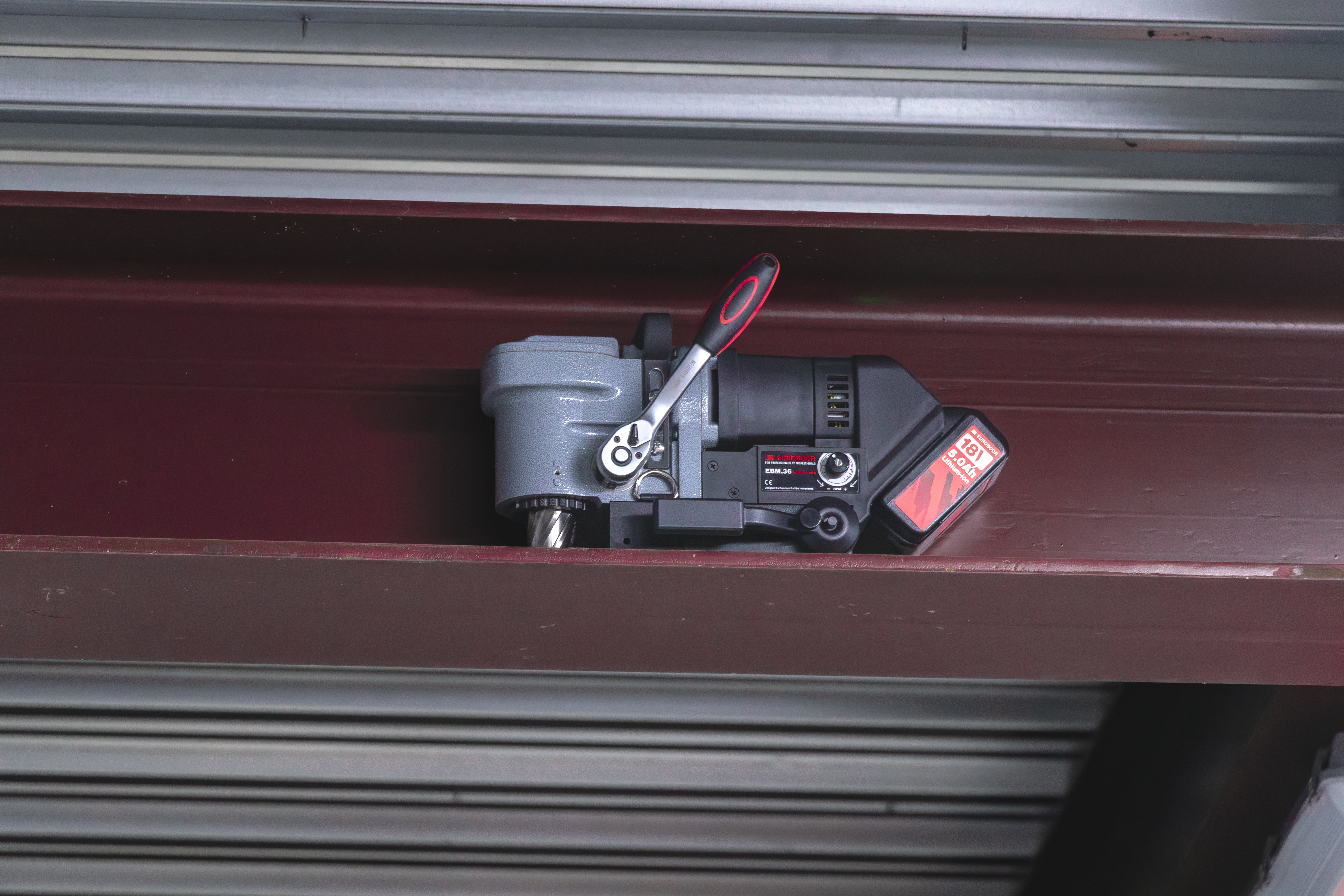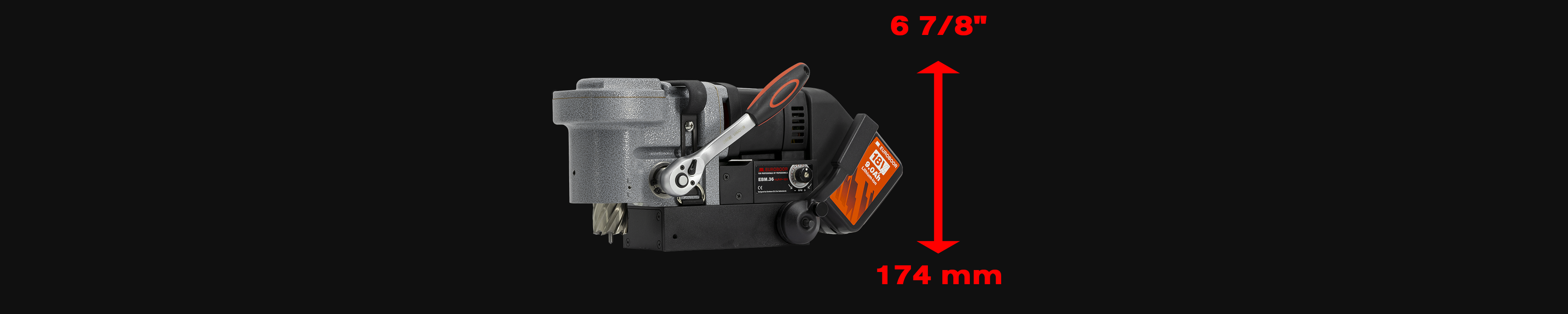 Gli spazi ristretti non devono rallentarti. La Euroboor EBM.36+LP/P-18V entra dove altre macchine di foratura magnetica non riescono, offrendoti tutta la potenza e la precisione necessarie in aree confinate.