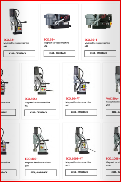 Indien je in de periode van 1 september tot en met 31 oktober 2024 een actiemodel Euroboor kernboormachine hebt gekocht, ontvang je tot € 300,- retour. Je kan jouw cashback aanvraag indienen tot en met 30 november 2024.