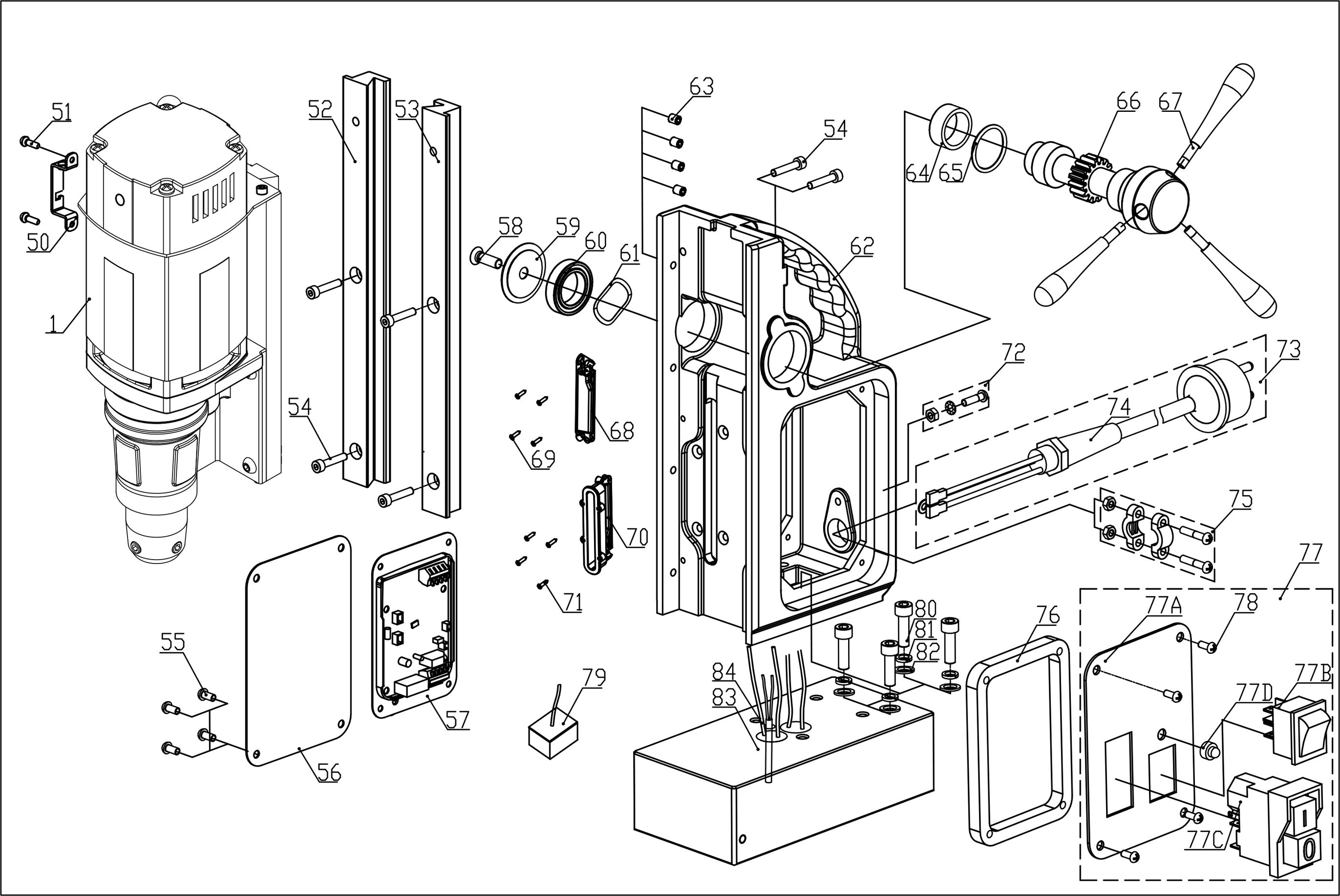 Magneet kernboormachine, kernboren max. dia 40 millimeter, voedingsbron spanning 220 - 240 Volt, draairichting rechtsom.